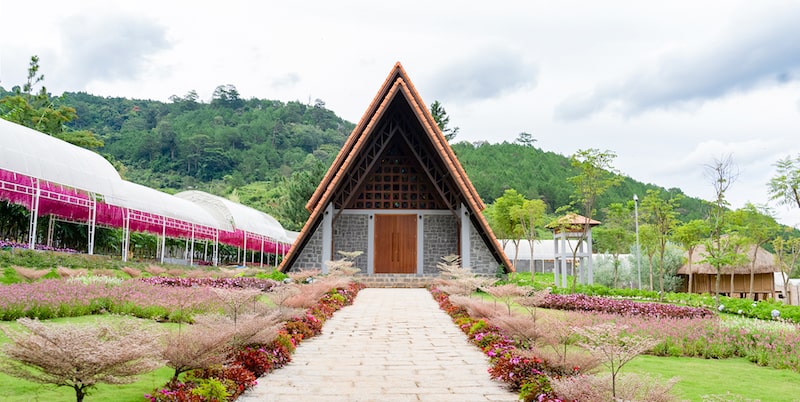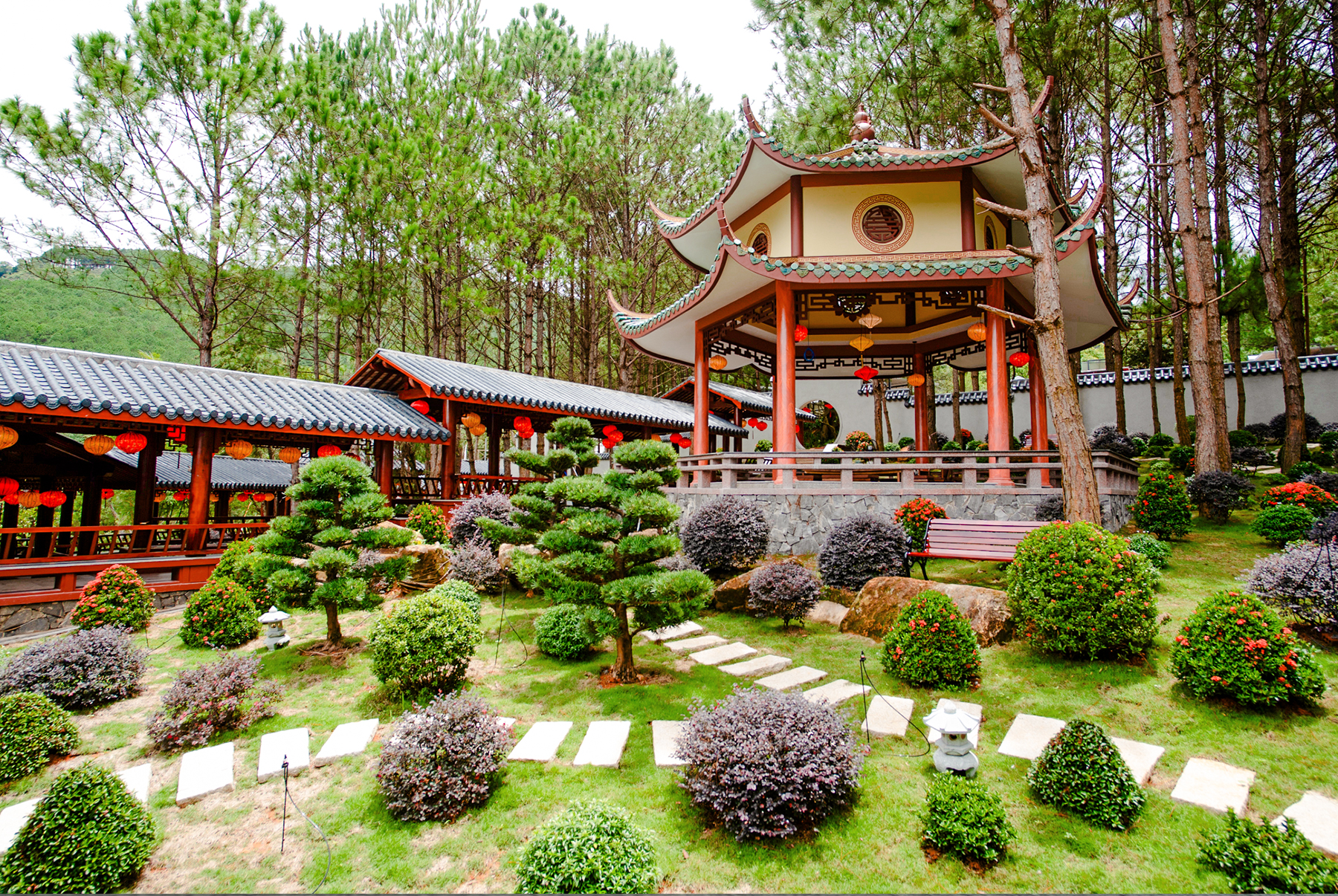 Không chỉ có thiên nhiên kỳ thú, Rừng Thông Núi Voi còn là không gian giao thoa văn hóa đặc sắc với các công trình kiến trúc lấy cảm hứng từ: