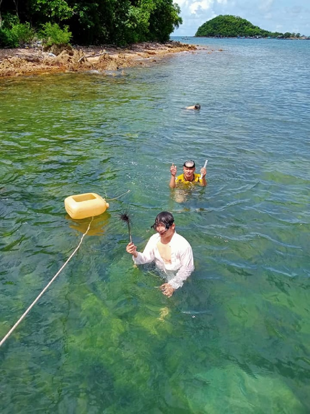 🔸 Quý khách tự do khám phá Hòn Đầm Đước, hòa mình vào làn nước trong xanh, không khí trong lành, mát rượi, tự do tắm biển, ngắm san hô, lặn bắt nhum (Tự túc chi phí thuê dụng cụ lặn, gắp nhum).