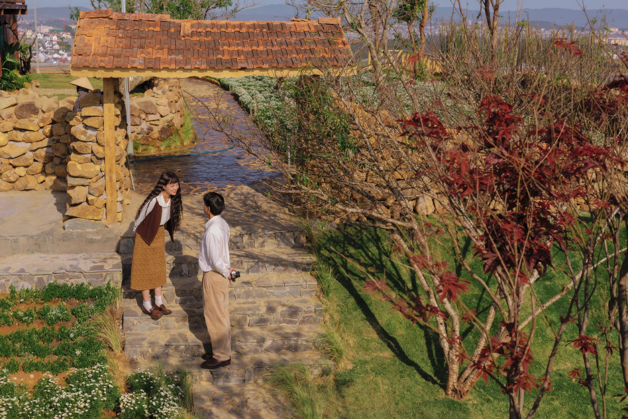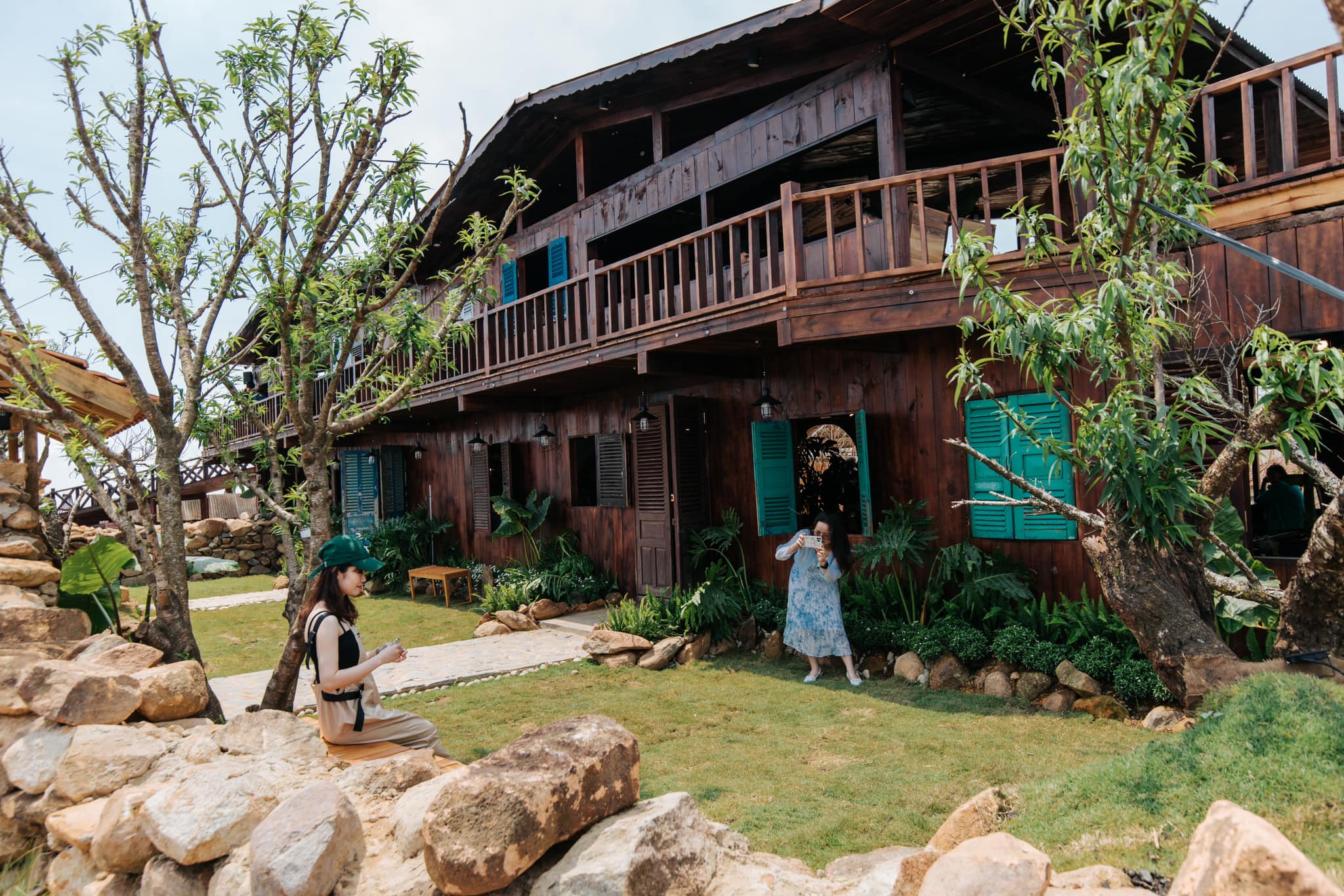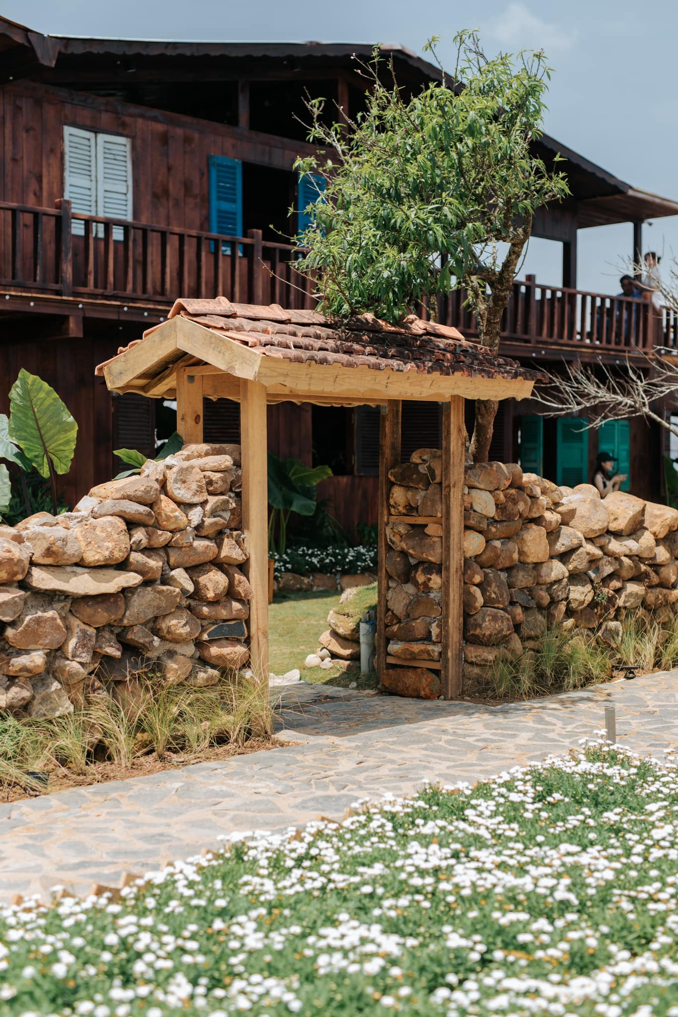 🏡 TIỆM CAFÉ “LỜI CỦA GIÓ” – Một “ngôi làng cổ Châu Âu” thu nhỏ với tường đá phủ rêu, nhà gỗ cổ kính, vườn hoa cúc trắng dịu dàng. (Chi phí nước uống tự túc.)