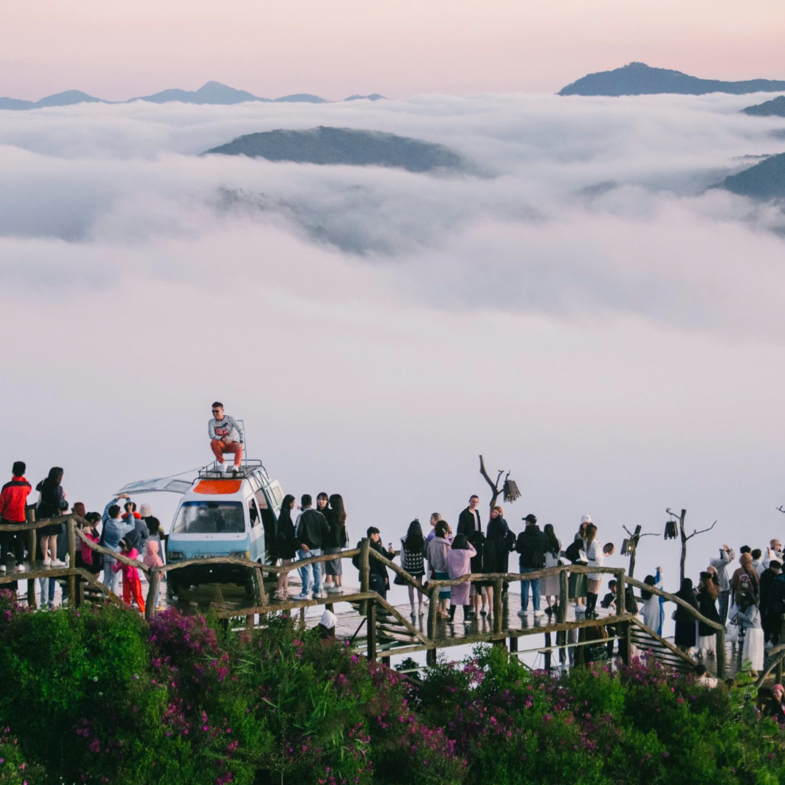 ☁️ THIÊN ĐƯỜNG SĂN MÂY – CẦU ĐẤT PANORAMA. Ngắm bình minh rực rỡ trên biển mây bồng bềnh, check-in tại các tiểu cảnh độc đáo. Quý khách có thể thuê trang phục cổ trang, Mông Cổ để chụp ảnh (chi phí tự túc).