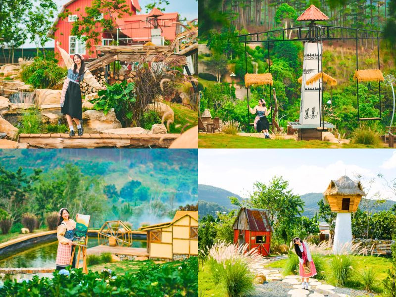 🏡 Fairytale Land – Làng Cổ Tích Đà Lạt: Lấy cảm hứng từ Làng Hobbit New Zealand, nơi đây tái hiện một thế giới cổ tích đầy màu sắc với các ngôi nhà nhỏ xinh, người lùn, đường hầm bí mật,…