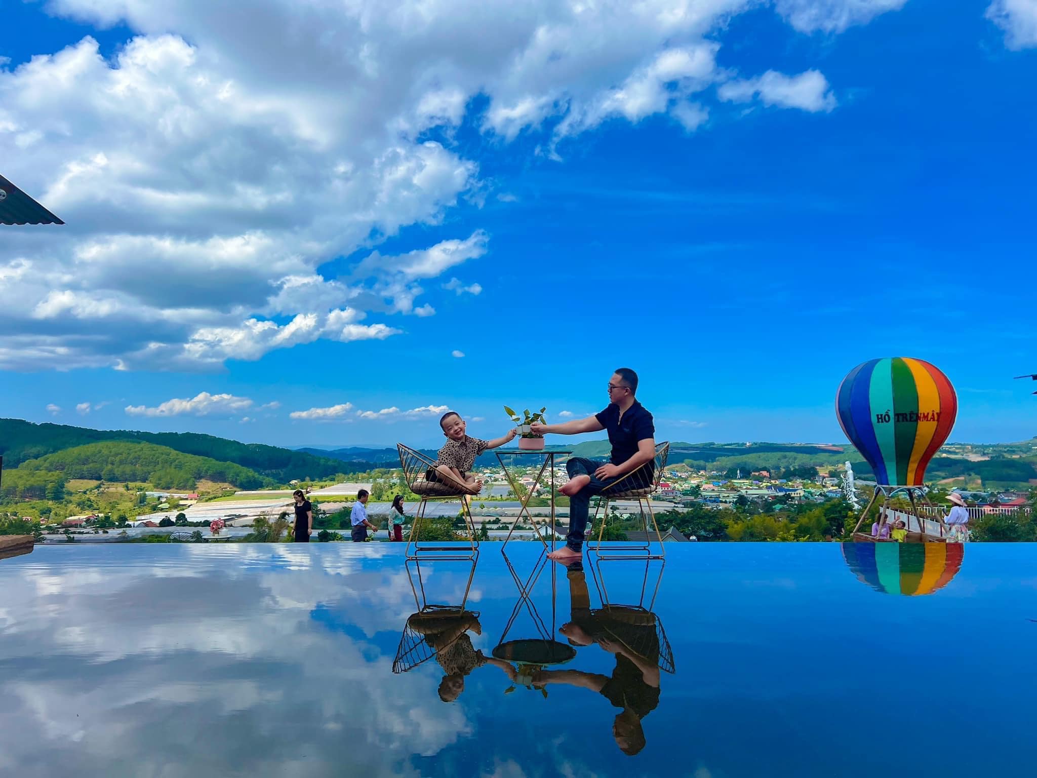 📸 Không gian cà phê mở giữa đồi thông, mặt nước phản chiếu mây trời, tiểu cảnh “triệu like”, săn mây cực chất vào sáng sớm.