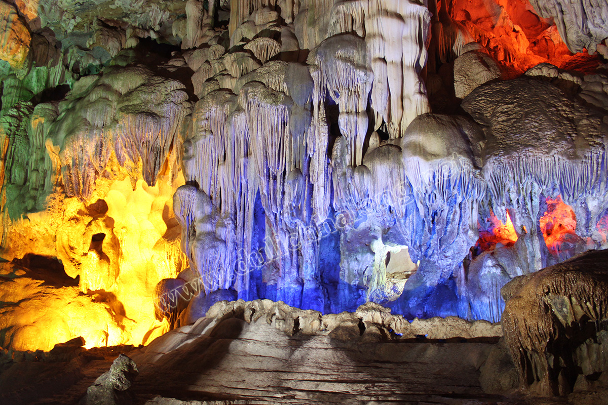🌌 Động Thiên Cung: Nằm trên đảo Đầu Gỗ ở độ cao ~25m, hang động rộng gần 10.000m² với nhũ đá và măng đá kỳ ảo, tạo nên không gian như chốn thiên đình huyền bí. Đây là một trong những hang động đẹp và nổi bật nhất vịnh Hạ Long.