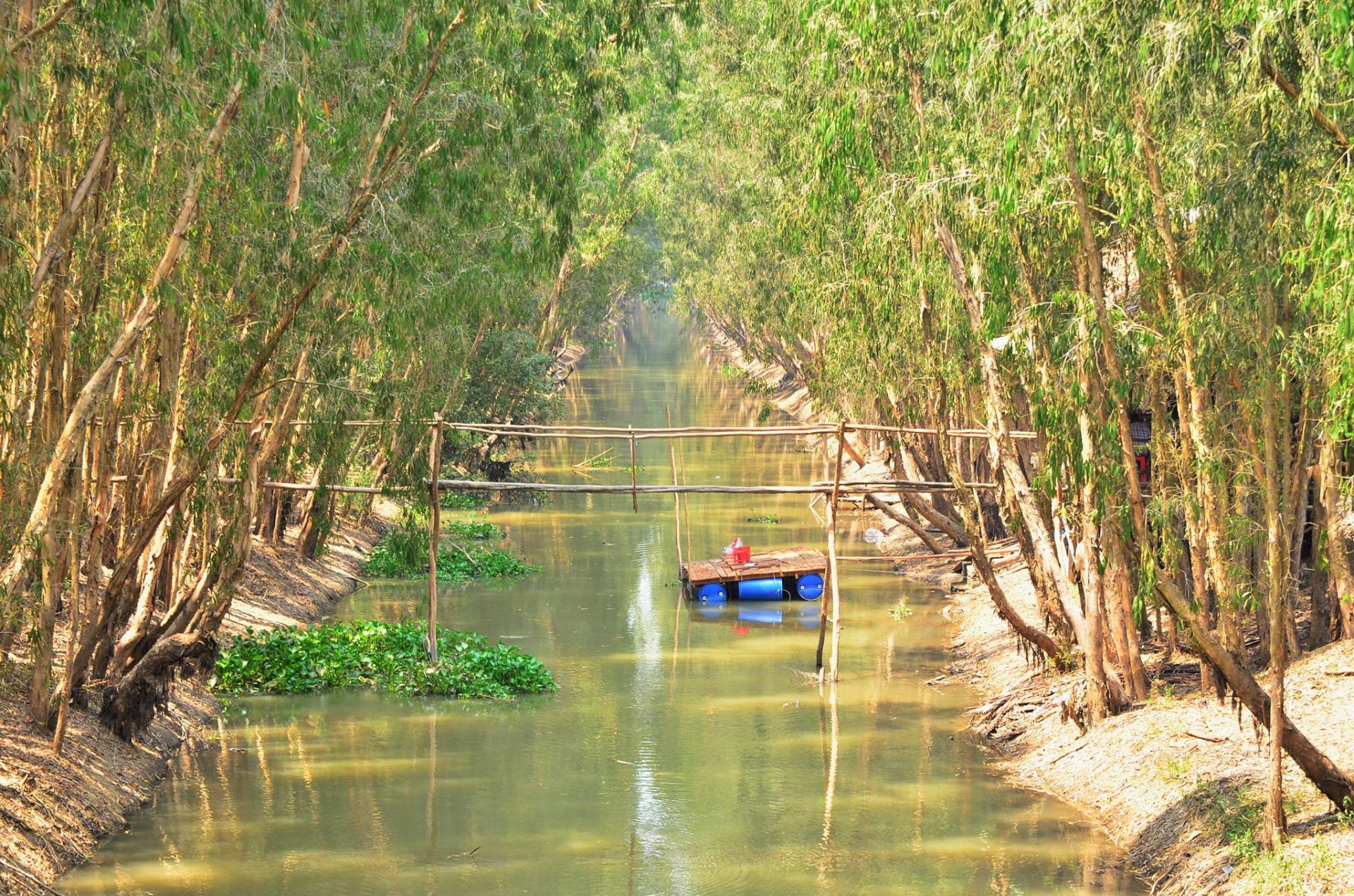 🚐 Sau đó, khởi hành đến Rừng tràm Trà Sư – điểm đến nổi bật nhất khi nhắc đến du lịch sinh thái miền Tây. Tọa lạc tại huyện Tịnh Biên (An Giang), Trà Sư là khu bảo tồn thiên nhiên rộng hơn 850ha, với hệ sinh thái rừng ngập nước tiêu biểu của vùng Đồng bằng sông Cửu Long.
