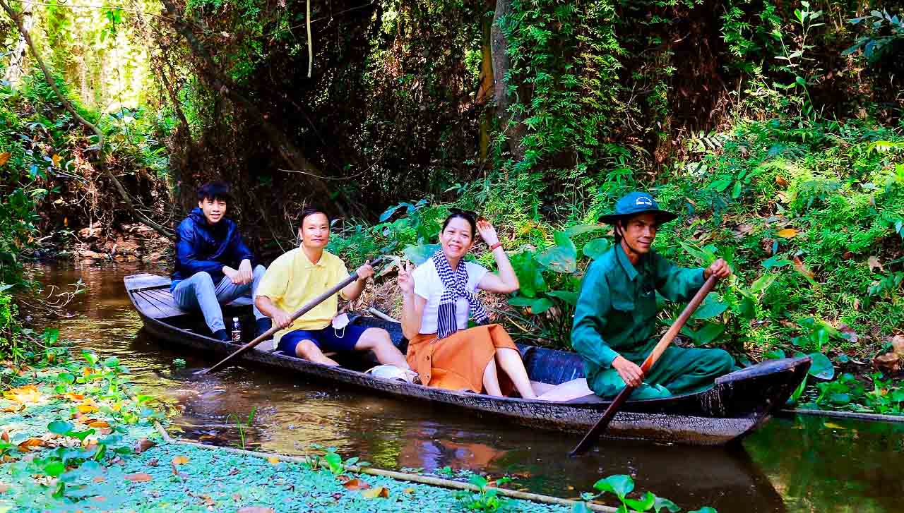 Buổi Trưa: 🍲 Đoàn dùng cơm trưa tại nhà hàng địa phương với thực đơn mang đậm hương vị miền Tây như Cá linh chiên giòn, Lẩu mắm, Rau rừng, bông điên điển, bông súng chấm kho quẹt…